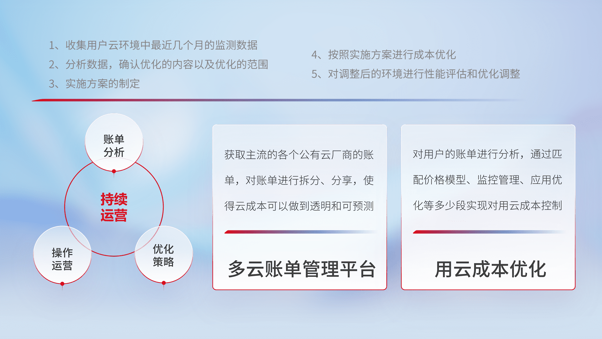 运用智能化工具分析云资源,,提供日常费用可视化工具,,,,自动账单拆分,,,成本优化云上费用,,,,降本增效。。。。